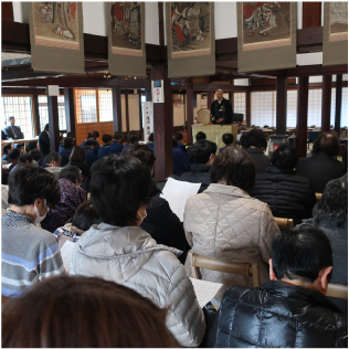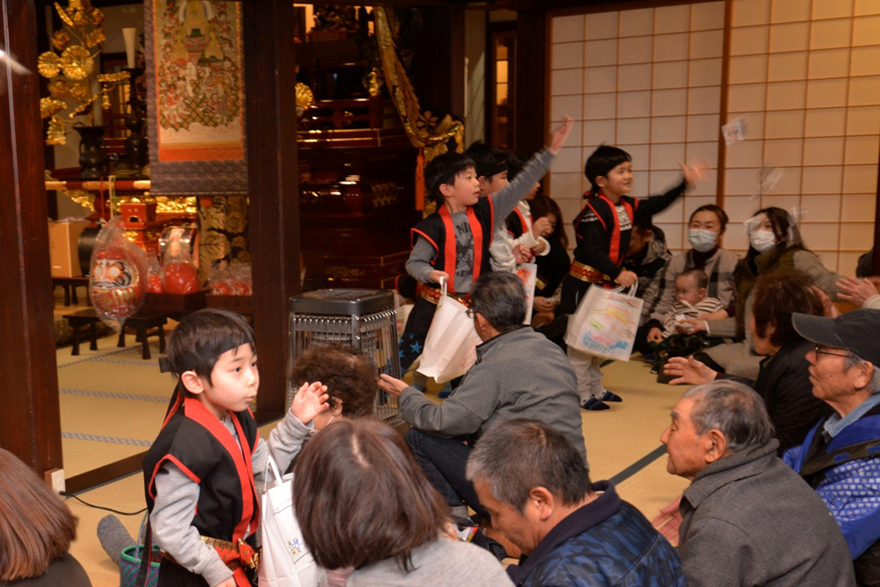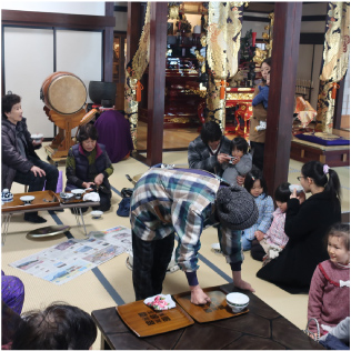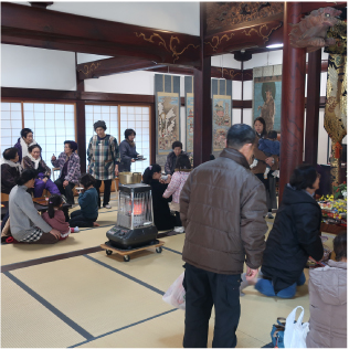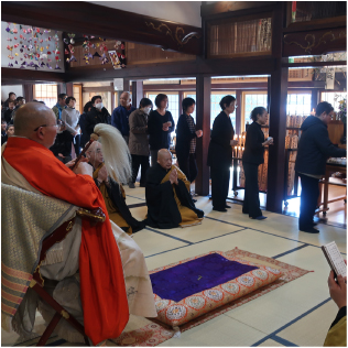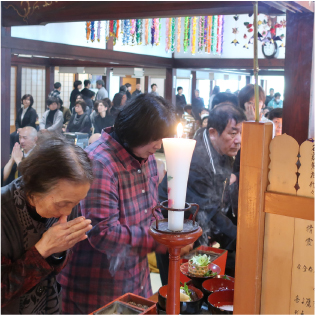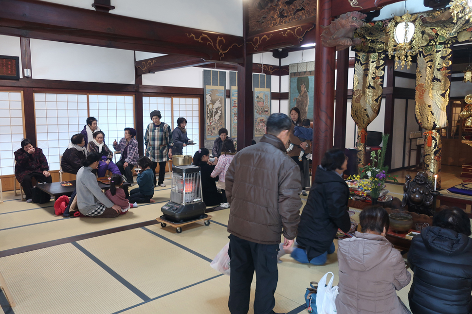 | 2日 | 年 賀 | 檀信徒各家がご本尊さまとご先祖さまに新年のご挨拶に来る日です。昔ながらの甘酒やお屠蘇が振る舞われます。 |