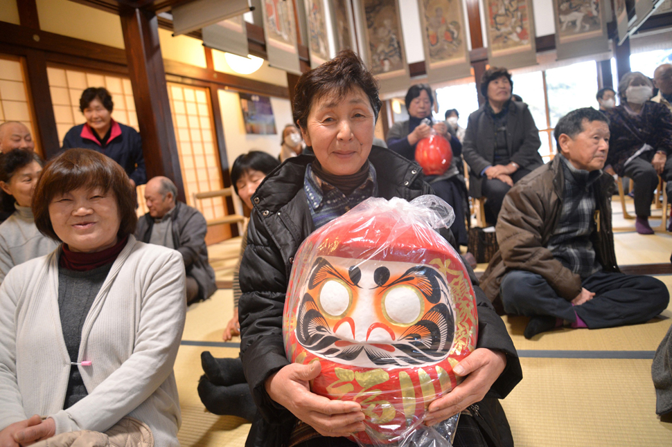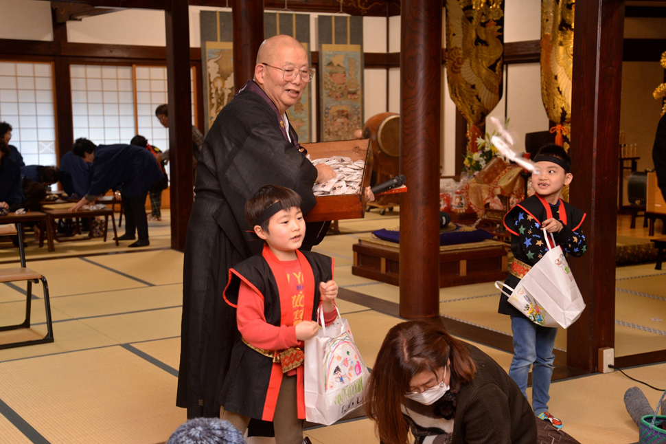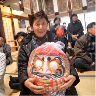大般若経を転読する大祈祷法要を行います。 各地から祈願者が訪れる盛大なお祭りです。 終って特大だるまが当たる開運達磨抽選会や招福豆まきがあります。 |